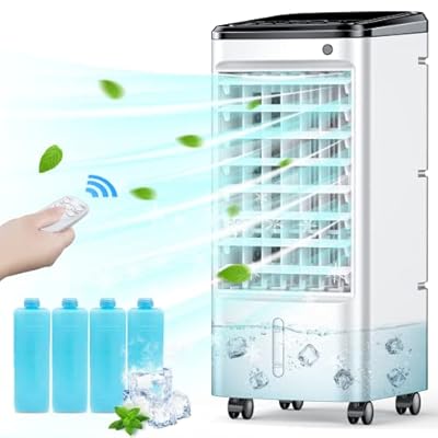 Description: TEMEIKE Swamp Cooler Air Conditioner, 3-IN-1 Evaporative Air cooler w/ 4 Modes & 3 Speeds, 12H Timer & Remote & Dual Water Tank, 65? Oscillating Air Conditioner Portable for Room Bedroom Home Indoor... [read more] Click to see full description