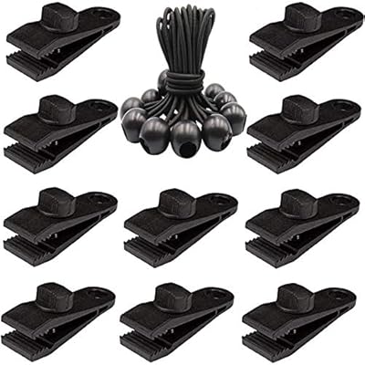 Description: Tarp Clips Heavy Duty Lock Grip - Thumb Screw Tent Clamps for Tarps with Ball Bungee 8.5 Inch Tie Down Bungee Cords for Canopy, Awnings, Pergola, Canvas Covers, Outdoor Camping, Swimming Pool (20 PCS)... [read more] Click to see full description